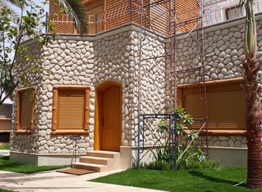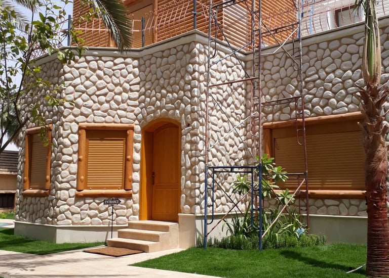 تركيب حجر ورخام وقرميد بدقة تضمن جمال ومتانة الواجهة.