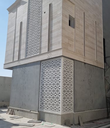 تركيب الحجر الطبيعي والرخام بدقة تضمن متانة وجمال الواجهة.